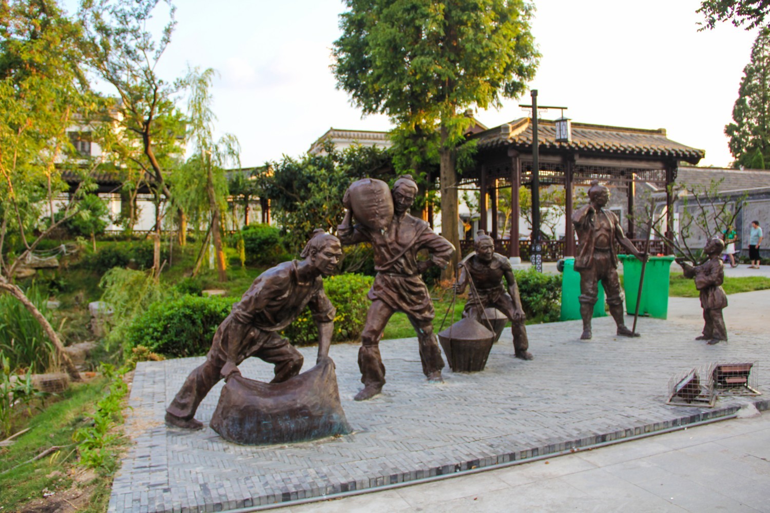 The grain transport dock, where cargo ships transporting grain and salt from four townships and eight towns transport goods, is an important hub for the transportation of goods on the Grand Canal and Lixia River. The groups of statues and wall reliefs vividly depict the prosperous scene of that time. There are many grain and salt shops around here, such as Tongchang Grain Store, Yitaiyuan Grain Store, Yongshunyuan Grain Store, Zhenlong Grain Store, and Zhanjiaxiang Salt Store.