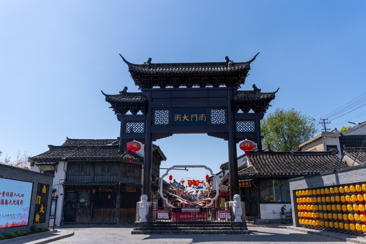 Nanmen Street is located outside the south gate of Gaoyou Ancient City in Jiangsu Province, on the west side of Yuchengyi Scenic Area, adjacent to the Grand Canal embankment. It is commonly known as Nanmen Ming and Qing Street and was once the busiest historical and cultural district in Gaoyou during the Ming and Qing dynasties. In 2014, it was listed as a World Heritage Site (an important part of the 46th World Heritage Site in China, the Beijing Hangzhou Grand Canal). The street was built in the Song Dynasty, flourished in the Ming and Qing Dynasties, and prospered in modern times. It is truly a vital link connecting the Lixia River and the Grand Canal, and linking Jiangsu and Anhui provinces. Customers came to both sides of the Grand Canal for transportation, and the situation lasted for more than 600 years until around the 1940s, when it was severely damaged by war and a fire that affected more than 40 shops, gradually leading to a depression. After the founding of the People's Republic of China, from 1993 to 1995, during the renovation of Yuchengyi by the People's Government of Gaoyou City, Nanmen Street was also renovated and restored. The street, which was restored to its original state and revitalized, has a total length of about 230 meters and more than 40 shops of various types. It has become a business card showcasing Gaoyou's products and local customs.